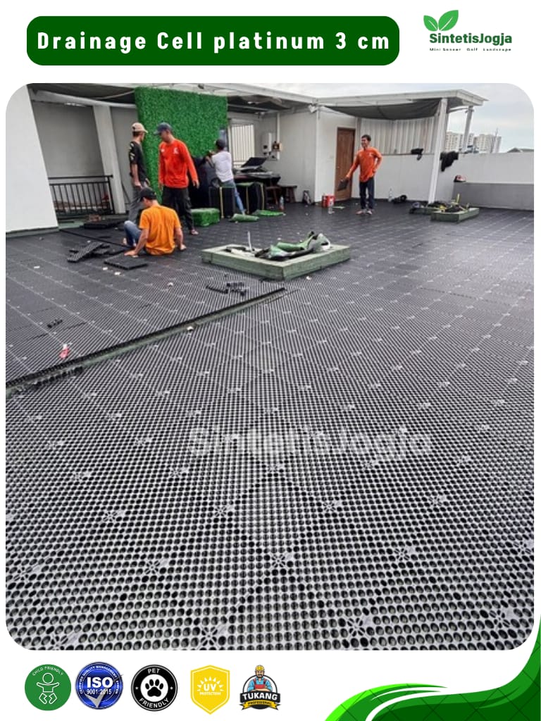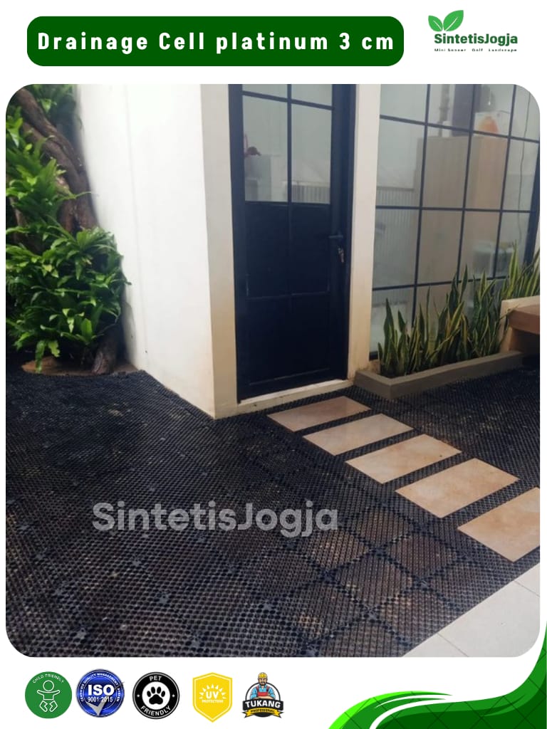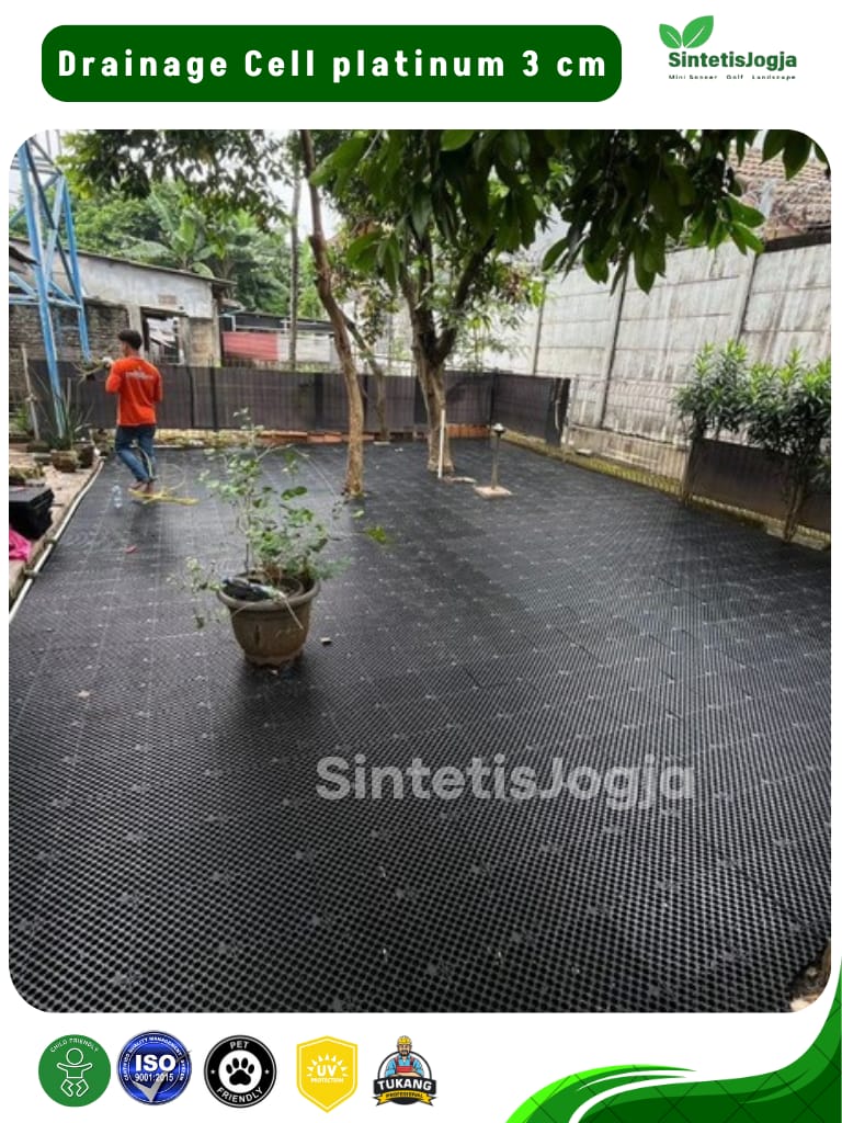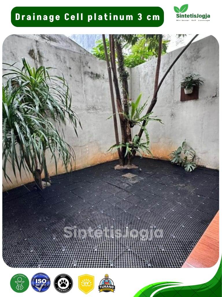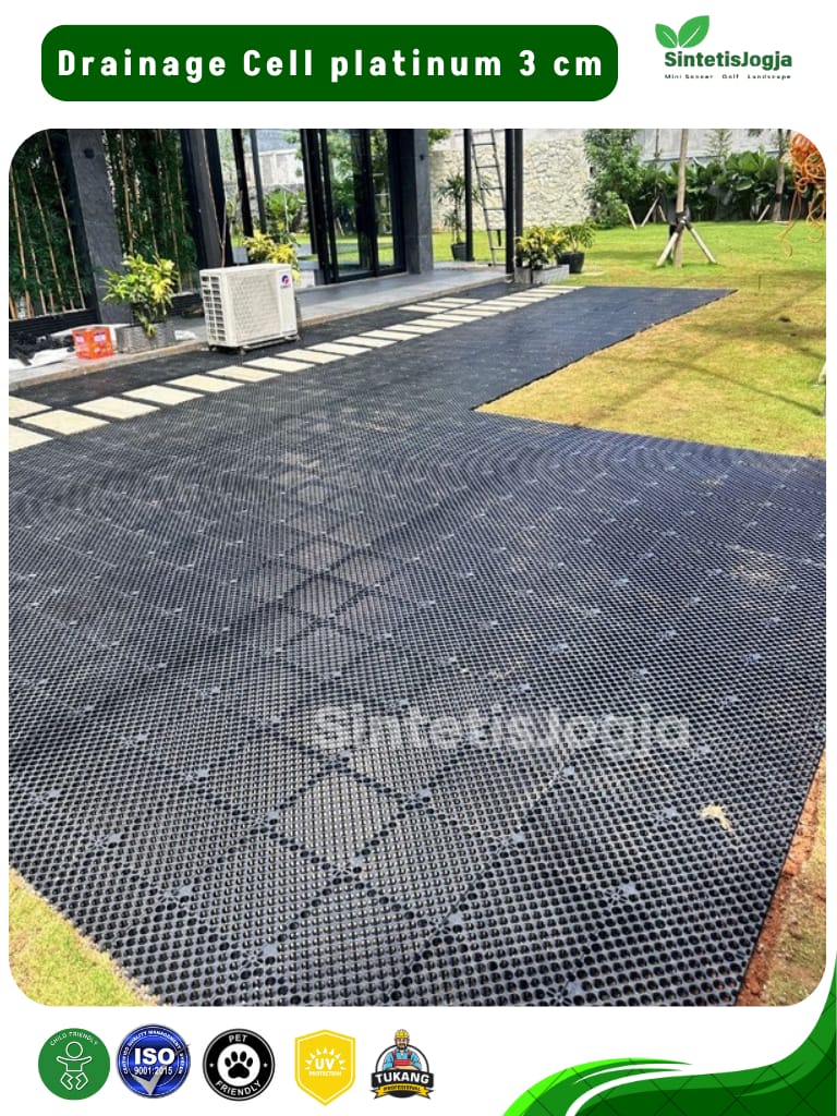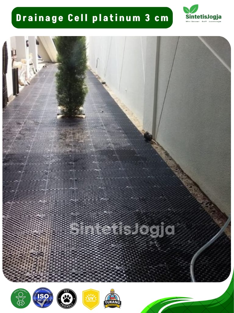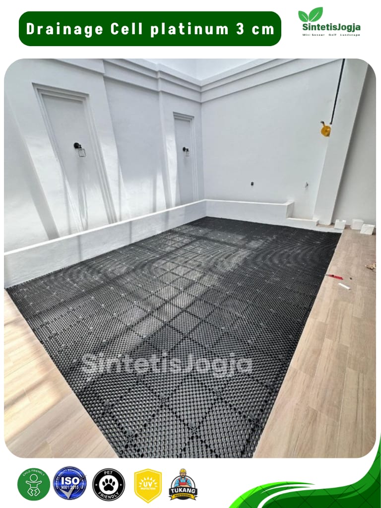Genangan air adalah musuh utama pemasangan rumput sintetis, terutama di area outdoor atau garasi. 𝗗𝗿𝗮𝗶𝗻𝗮𝗴𝗲 𝗖𝗲𝗹𝗹 𝟯𝗰𝗺 hadir sebagai lapisan sub-base yang dirancang untuk menciptakan rongga aliran air yang cepat dan efisien, sehingga permukaan tetap kering, tidak berbau dan bebas jamur.