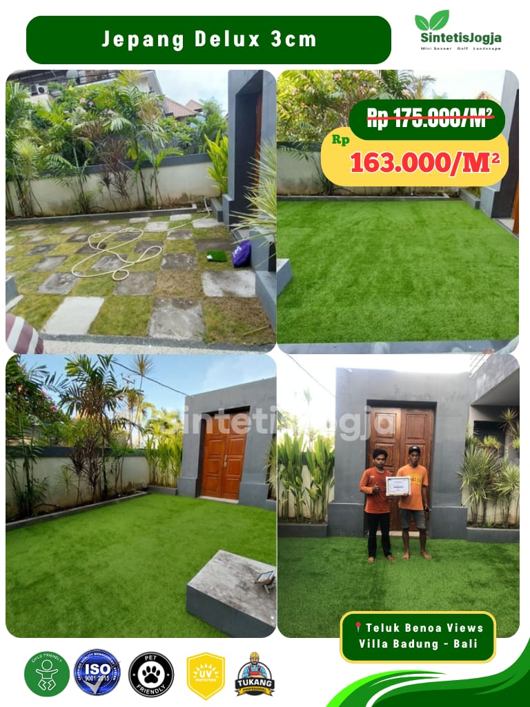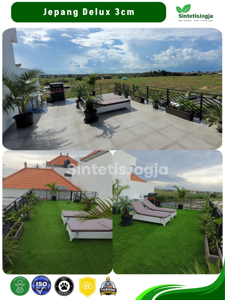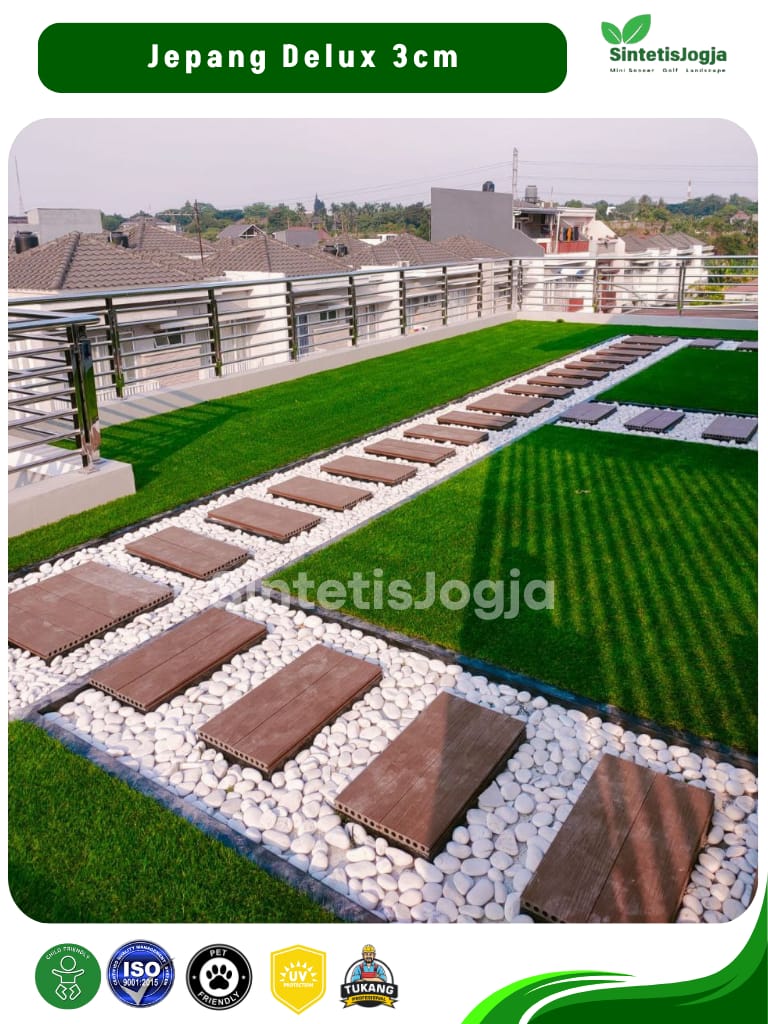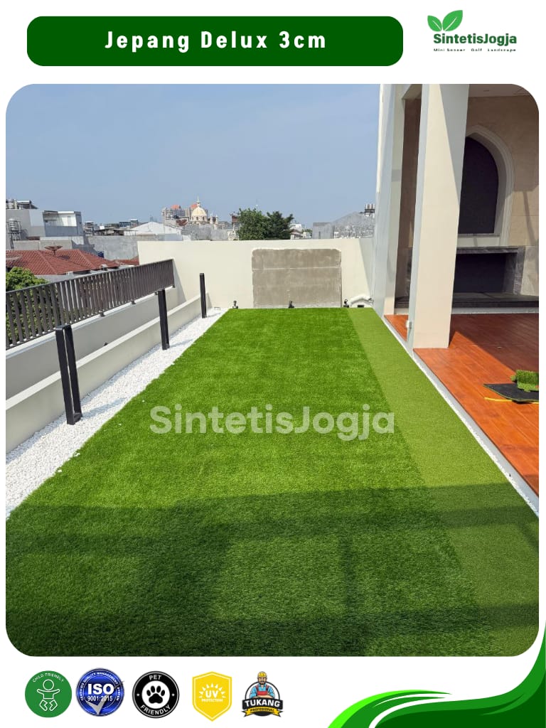Jepang Deluxe hadir untuk Anda yang mengutamakan kenyamanan maksimal dan tampilan visual yang 𝘧𝘶𝘭𝘭 (padat). Dengan 𝘥𝘦𝘯𝘴𝘪𝘵𝘺 tinggi sebesar 13.600, rumput ini memberikan tekstur yang sangat empuk, menjadikannya pilihan terbaik untuk area santai keluarga.