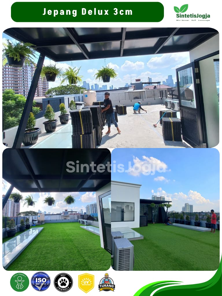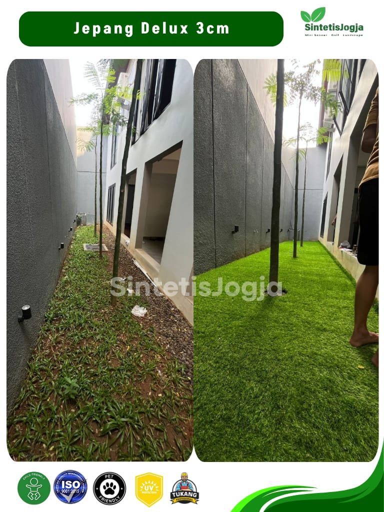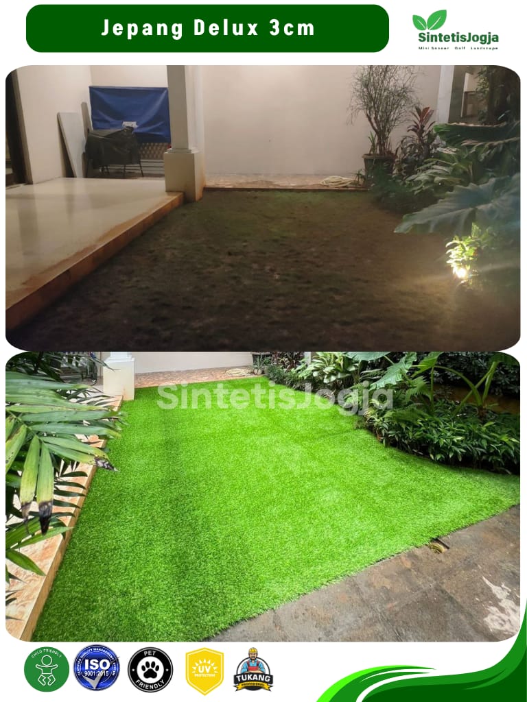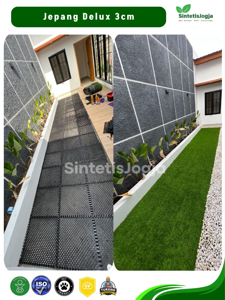 Jepang Deluxe hadir untuk Anda yang mengutamakan kenyamanan maksimal dan tampilan visual yang 𝘧𝘶𝘭𝘭 (padat). Dengan 𝘥𝘦𝘯𝘴𝘪𝘵𝘺 tinggi sebesar 13.600, rumput ini memberikan tekstur yang sangat empuk, menjadikannya pilihan terbaik untuk area santai keluarga.