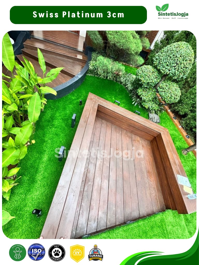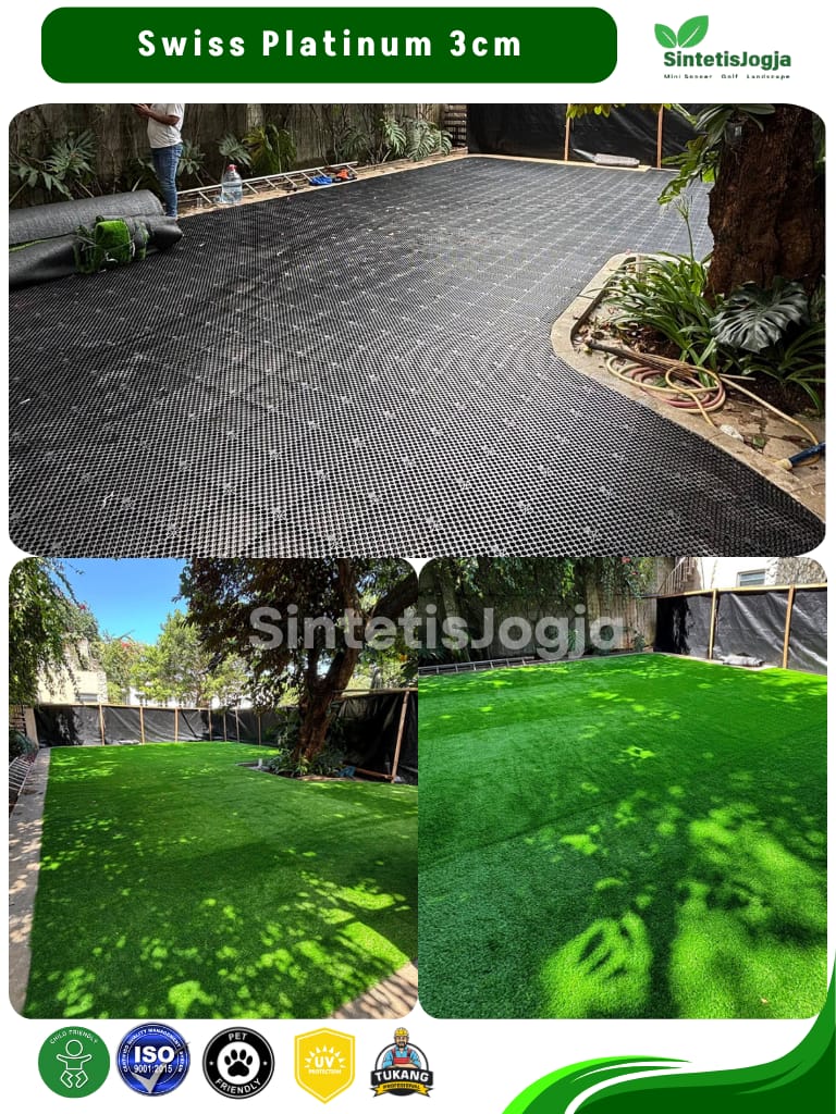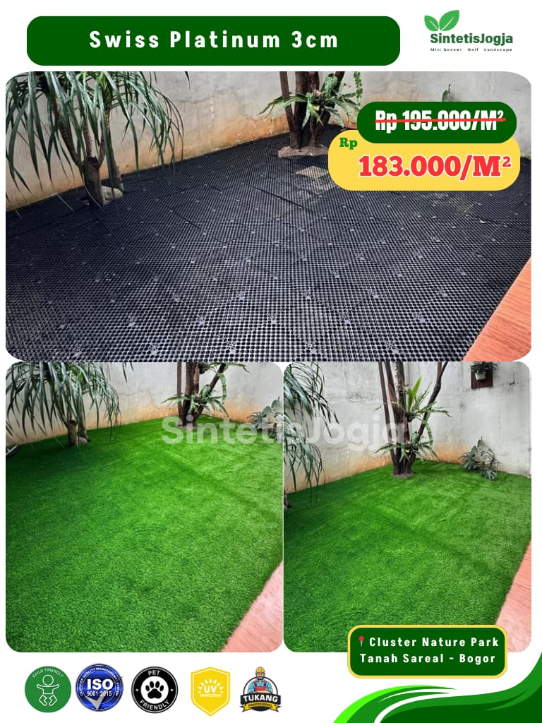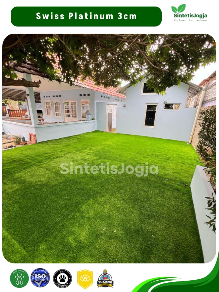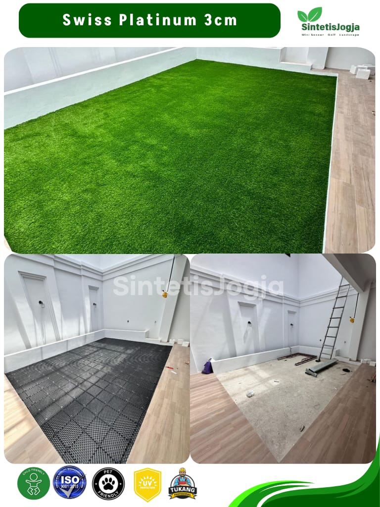 “Bukan sekadar rumput sintetis biasa, ini adalah Swiss Platinum – pilihan terbaik untuk kenyamanan dan keamanan keluarga Anda.”