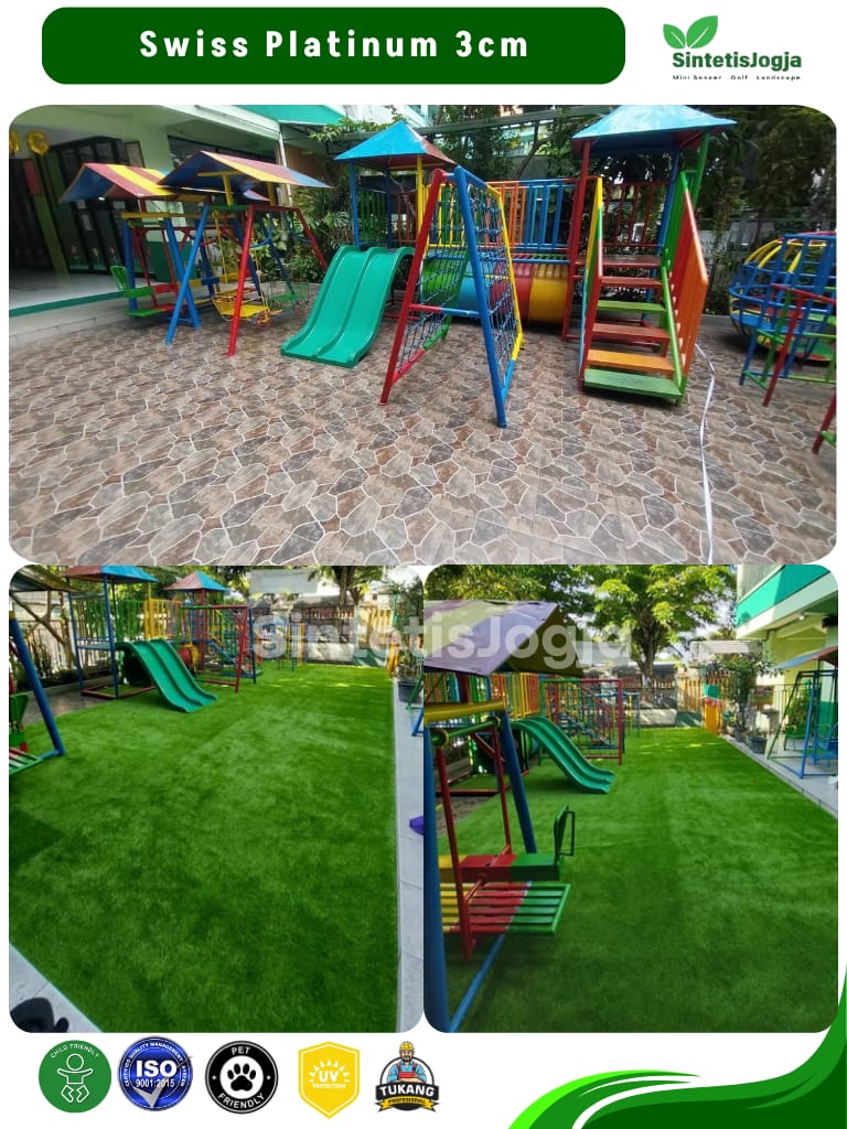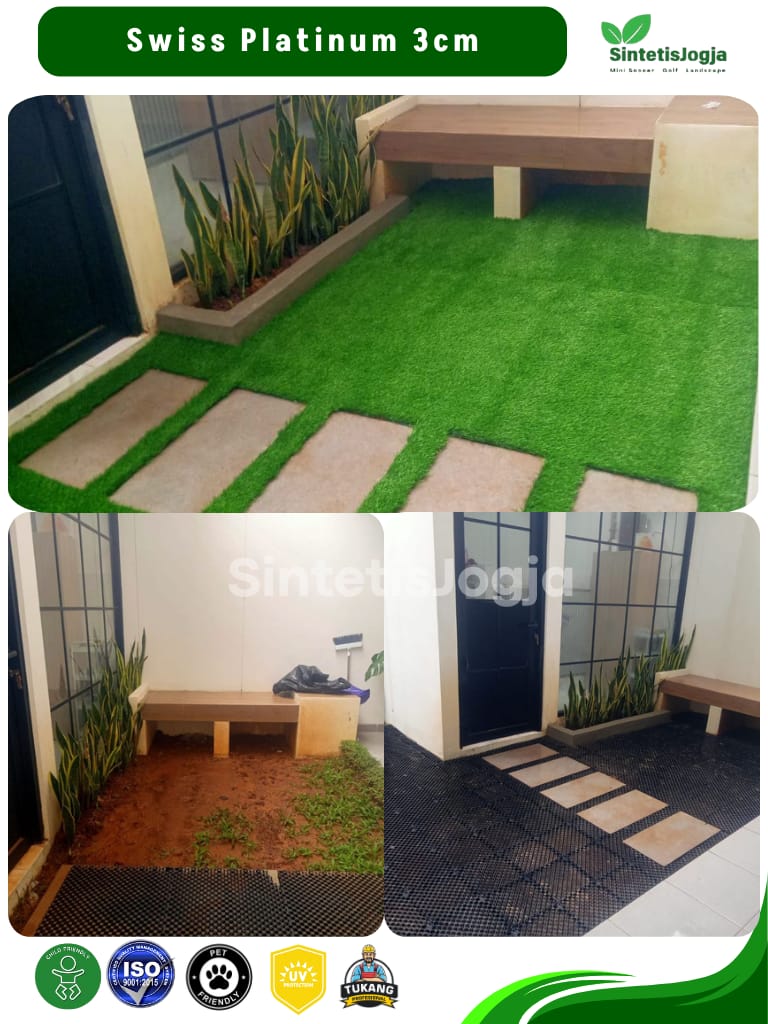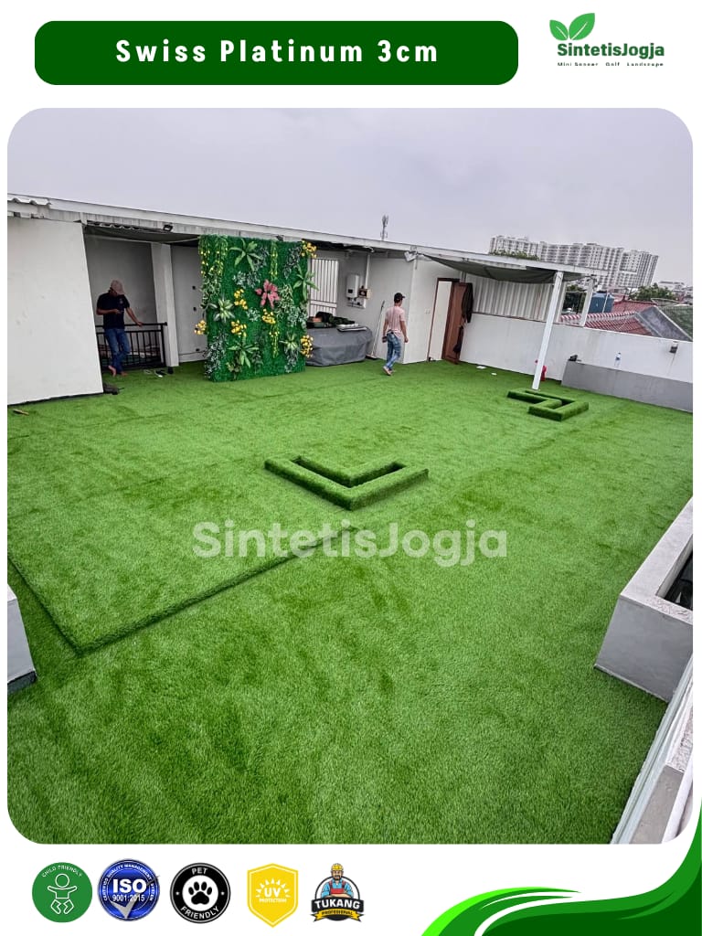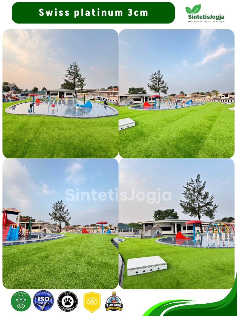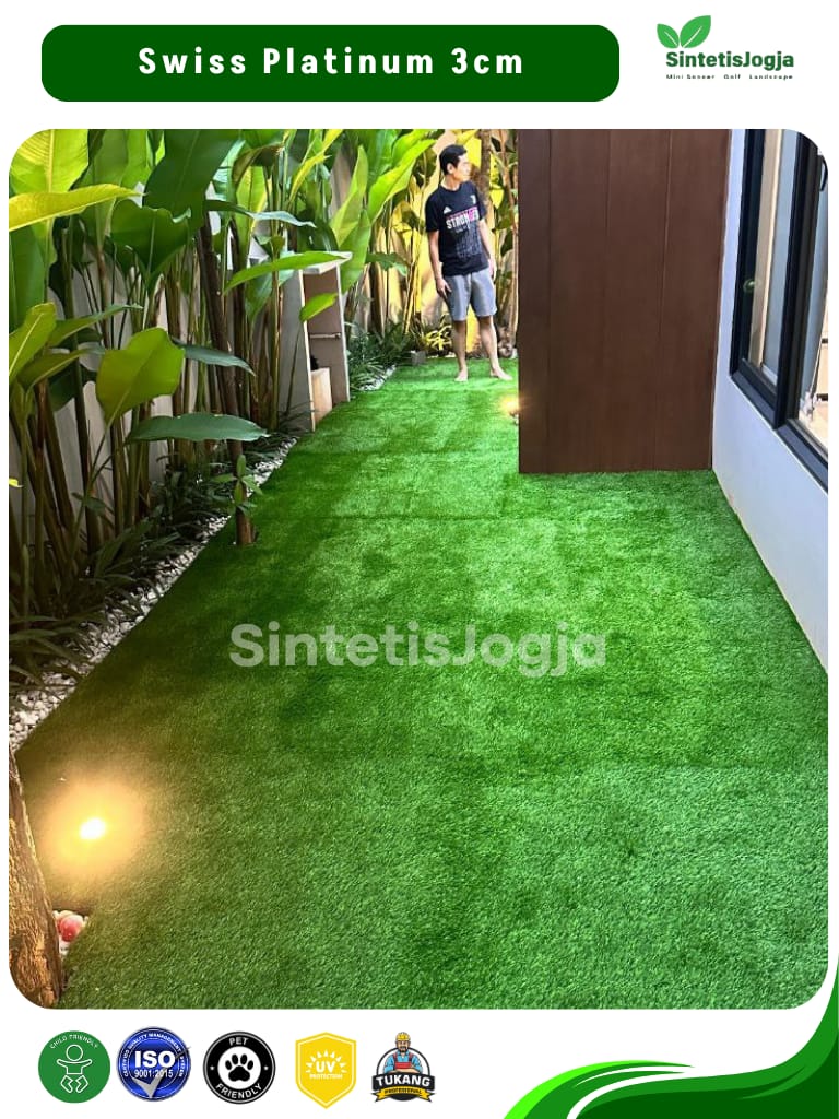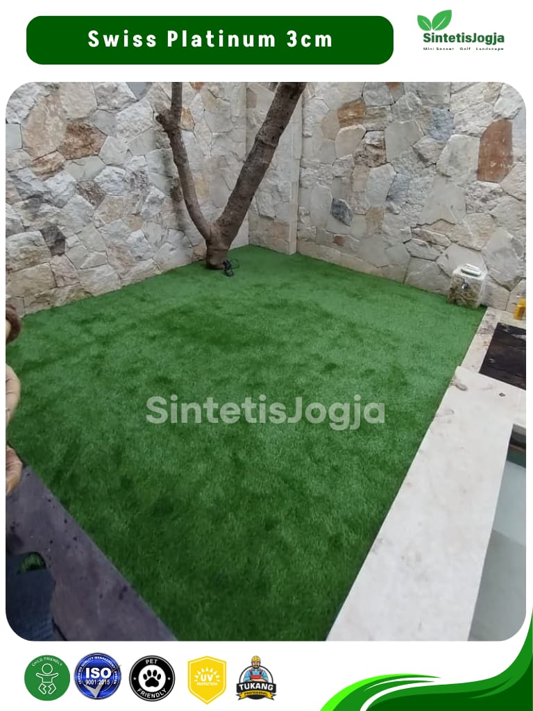 “Bukan sekadar rumput sintetis biasa, ini adalah Swiss Platinum – pilihan terbaik untuk kenyamanan dan keamanan keluarga Anda.”