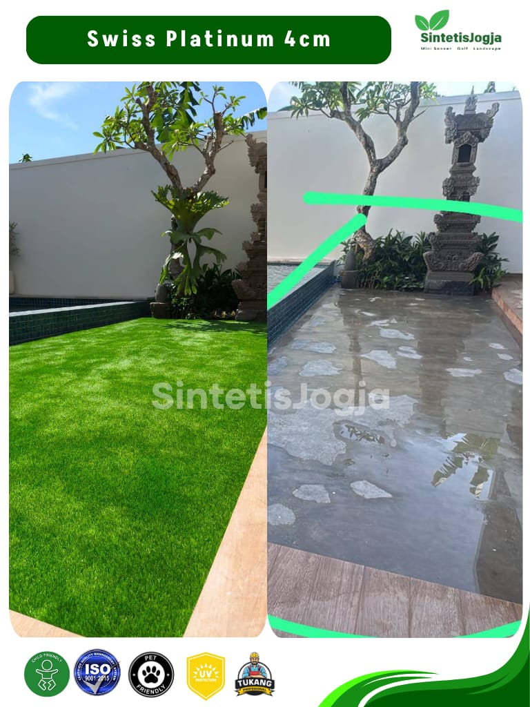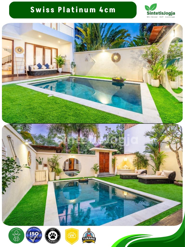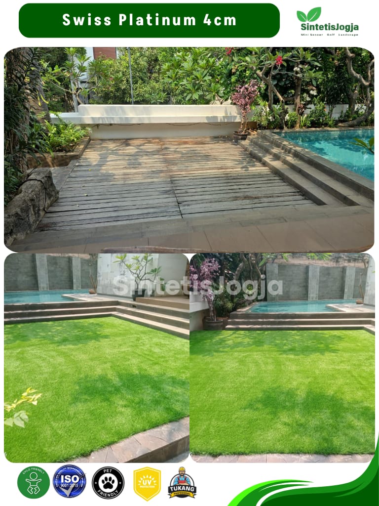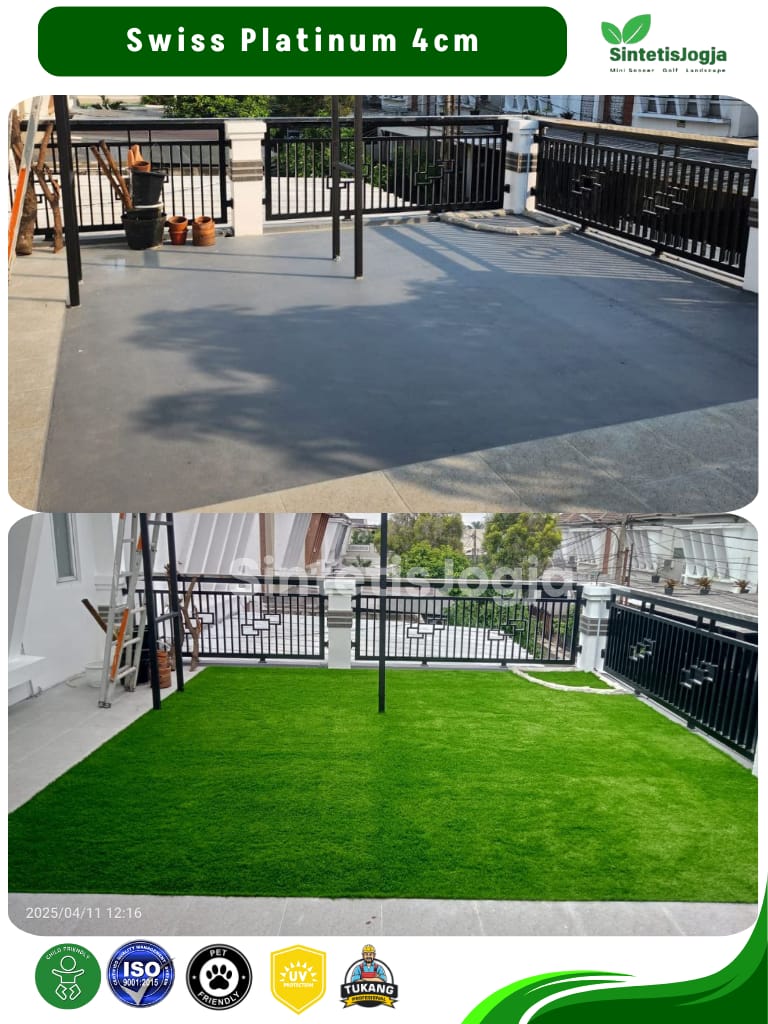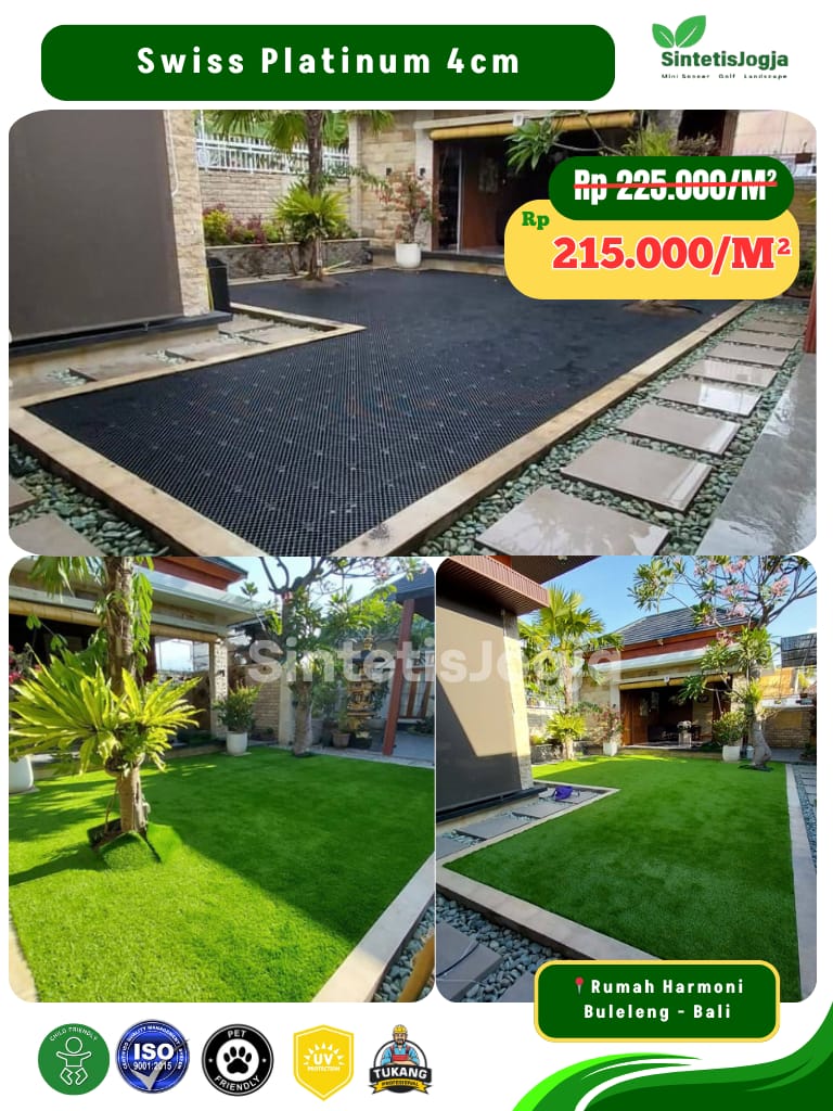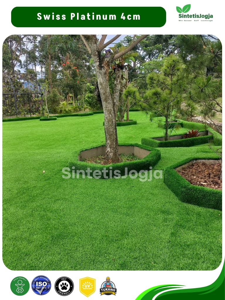 Swiss Platinum hadir sebagai kasta tertinggi dikelas rumput Swiss. Dengan sertifikasi 𝗜𝗦𝗢 produk ini menjamin keamanan penuh untuk anak-anak dan hewan peliharaan, serta daya tahan yang jauh lebih unggul untuk penggunaan jangka panjang.