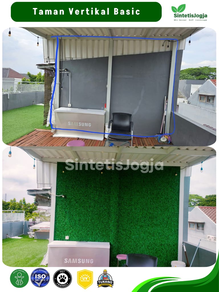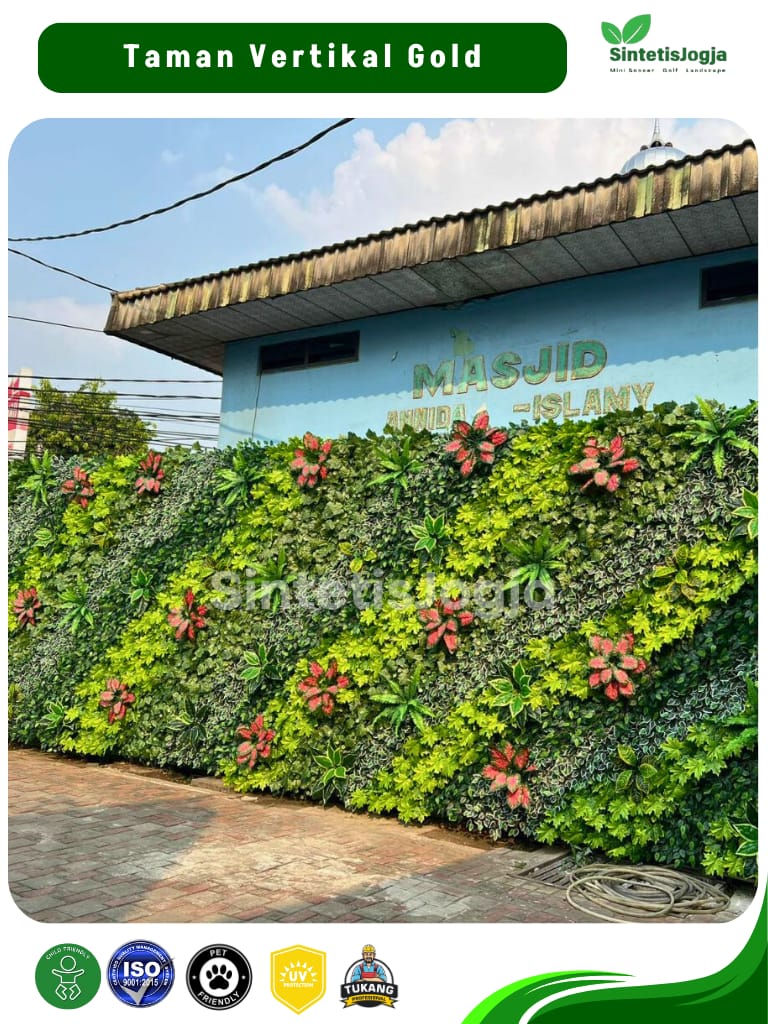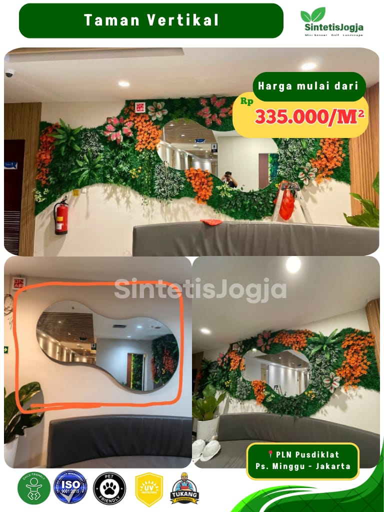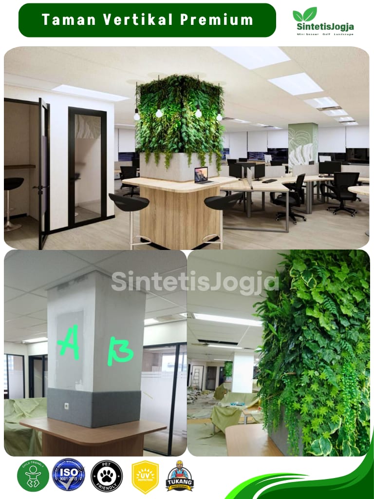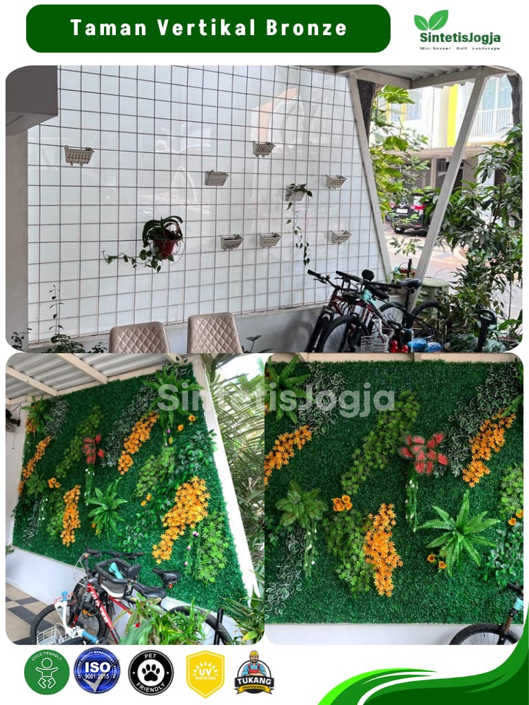 TAMAN VERTIKAL SINTETIS Media Indoor : TripleksMedia Outdoor : Polycarbonat (+100.000/m²)Min. order 5 m²Kategori taman vertikal– Basic– Standar– Bronze– Premium– Gold– PlatinumRekomendasi pemasangan indoor & outdoor Pesan Sekarang